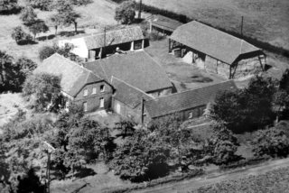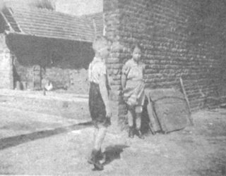 German children in a farmyard just before Operation Varsity. Frau Busch as a child, with her brother.