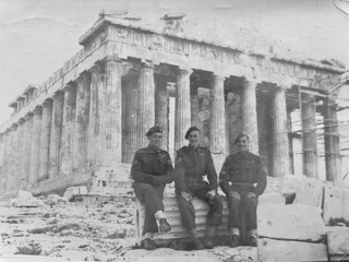 “We were billeted in the village school which had long ago ceased teaching. One of our pilots ‘Droop’ Newman, a skilled electrical engineer, was able to repair the village power station much to the joy of the villagers. We were introduced to ‘explosive’ fishing by the partisans which involved throwing explosives into the sea and harvesting the dead fish floating to the surface. We had many happy times in Megara and were able to visit Athens and even do some sightseeing.”